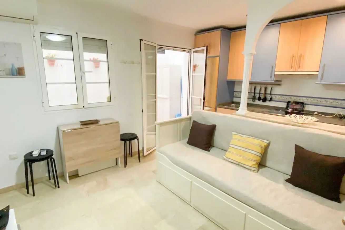 Acogedor apartamento en Cádiz, ideal para parejas o pequeñas familias. Dispone de un dormitorio con cama de matrimonio y un salón con sofá cama, perfecto hasta para 3 adultos o 2 adultos y 2 niños.