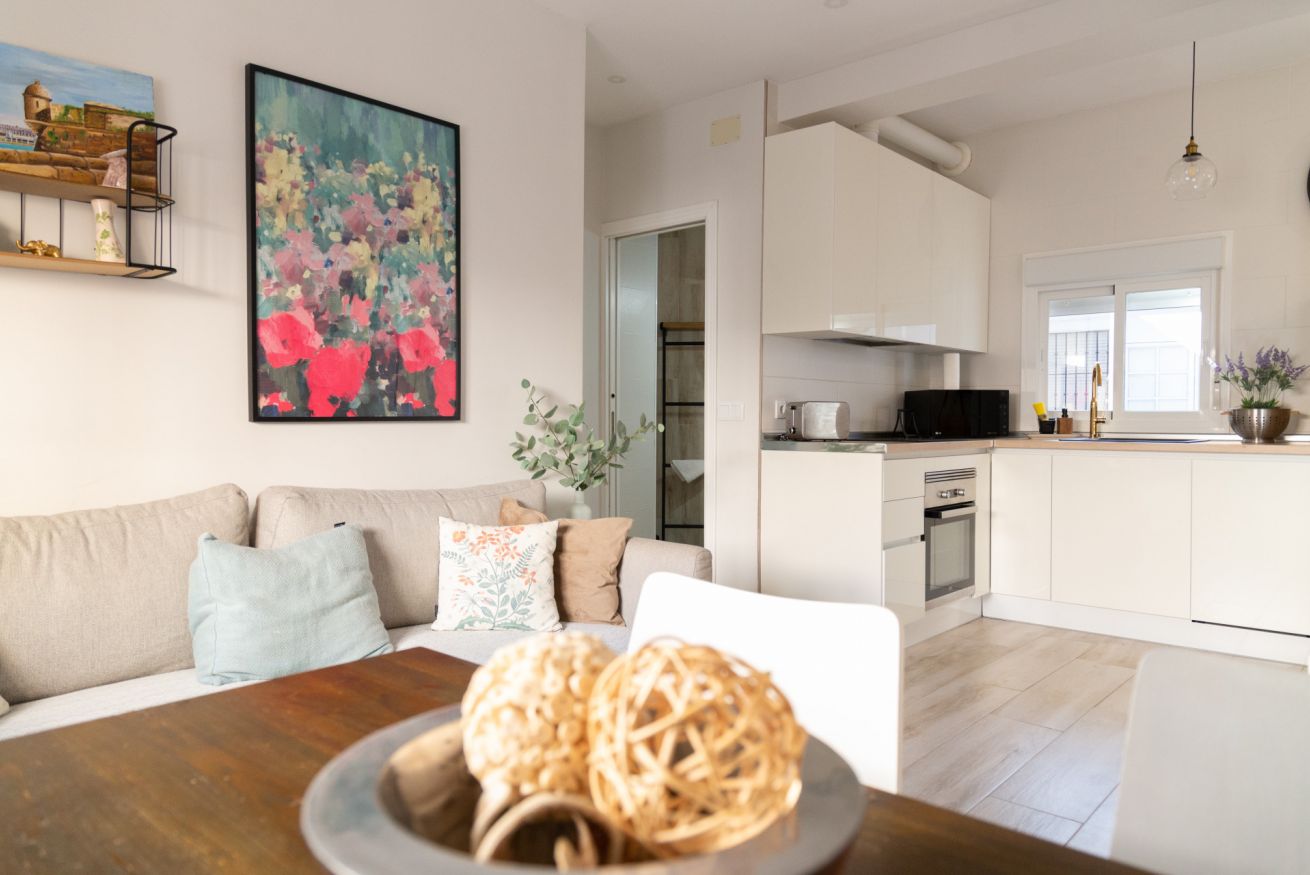 En un clásico edificio gaditano, casa Amelí, está totalmente reformada, para hacerlo más cómodo y moderno.