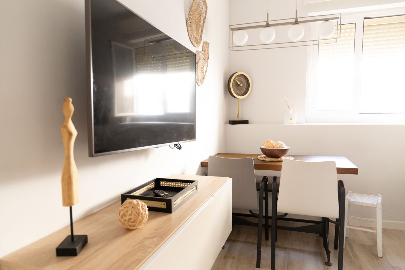 En pleno centro de la ciudad, podrás encontrar este magnífico apartamento completo con dos habitaciones, una con cama matrimonial y la segunda con dos camas individuales.