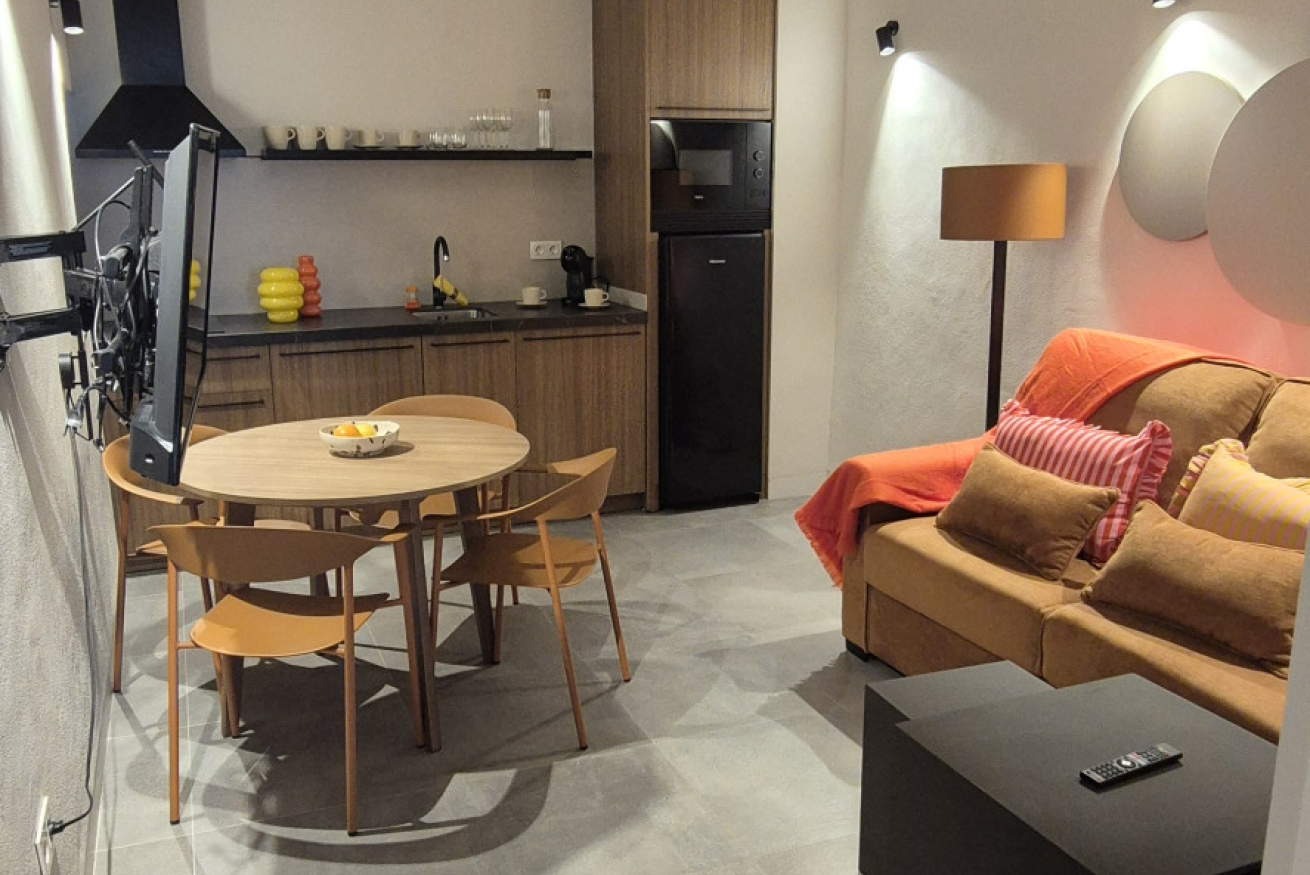 Apartamento en segunda planta(se puede hacer único apartamento con el 5). Cuenta con una habitación con cama de matrimonio, salón con sofá cama, cocina y cuarto de baño con acabados y electrodomésticos de calidad.